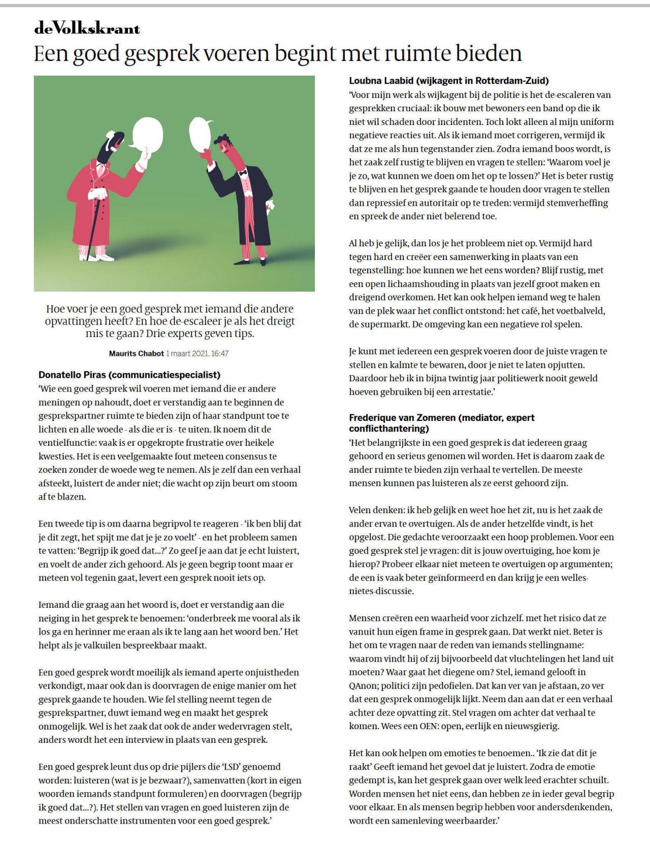 De Volkskrant: Een goed gesprek voeren begint met ruimte bieden